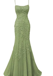 Sage Green Lace Appliques Long Prom Dress Mermaid Spaghetti Straps Evening Dresses simple gentle atmospheric and unique desi Bring summer colors to enhance whiteness