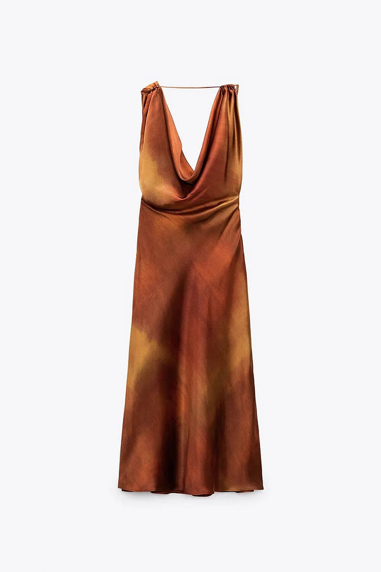 Sexy Gradient Print Contrast Scarf Collar One Step Dresses Simple atmospheric beautiful and unique desi
