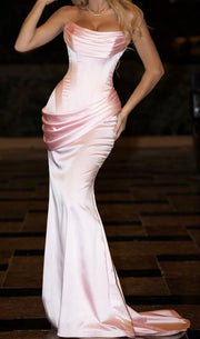 Sexy Mermaid Strapless Satin Pink Evening Party Gowns Evening Dress Special Formal Dresses Prom Dress