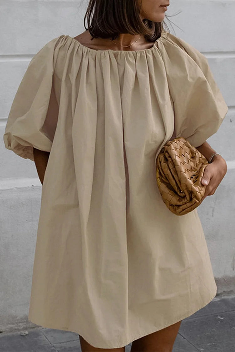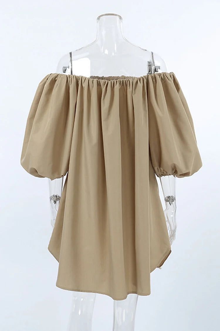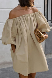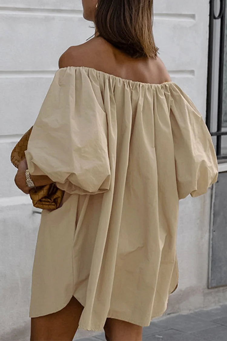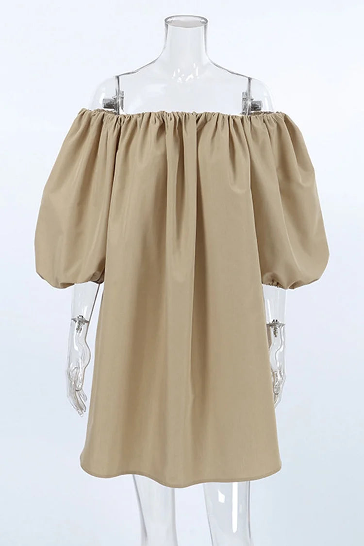 Sexy Solid Color Pocket Ruched Off Shoulder Lantern Skirt Dresses Simple atmospheric beautiful and unique desi