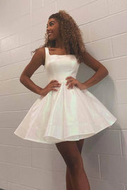 Shiny White Square Neckline A-line Short Homecoming Dress