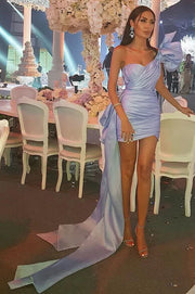 Short Sweetheart Sky blue Pleats One-shoulder Homecoming Dress
