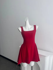 Simple A line Square Neck Red Short Homecoming Dress Summer Hoco Dresses Mini Cocktail Dress