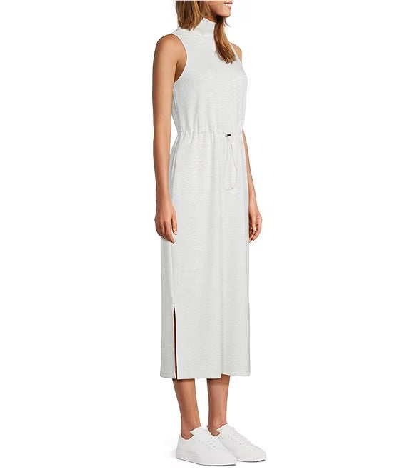 Sleeveless Mock Neckline Midi Dress simple gentle atmospheric and unique desi Bring summer colors to enhance whiteness
