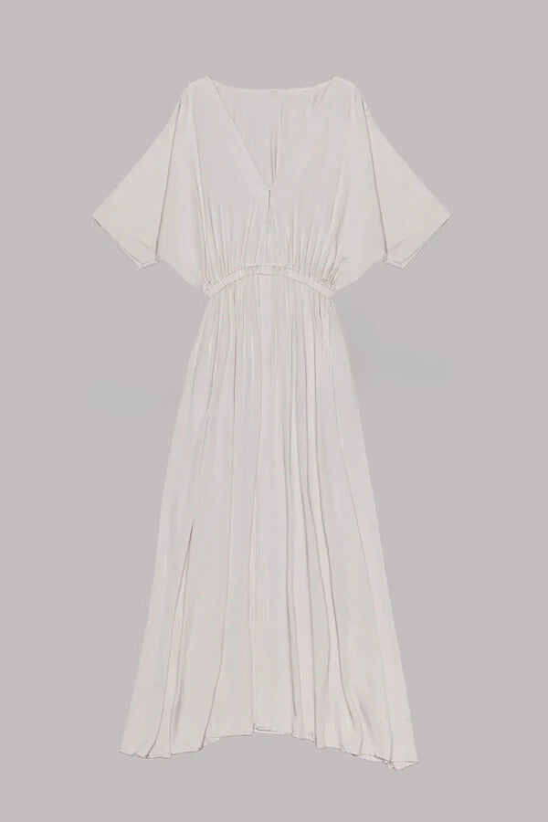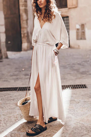 Soft and Elegant Kimono Sleeve Stretchy Waist Pocketed Slit Maxi Dress Simple atmospheric beautiful and unique desi