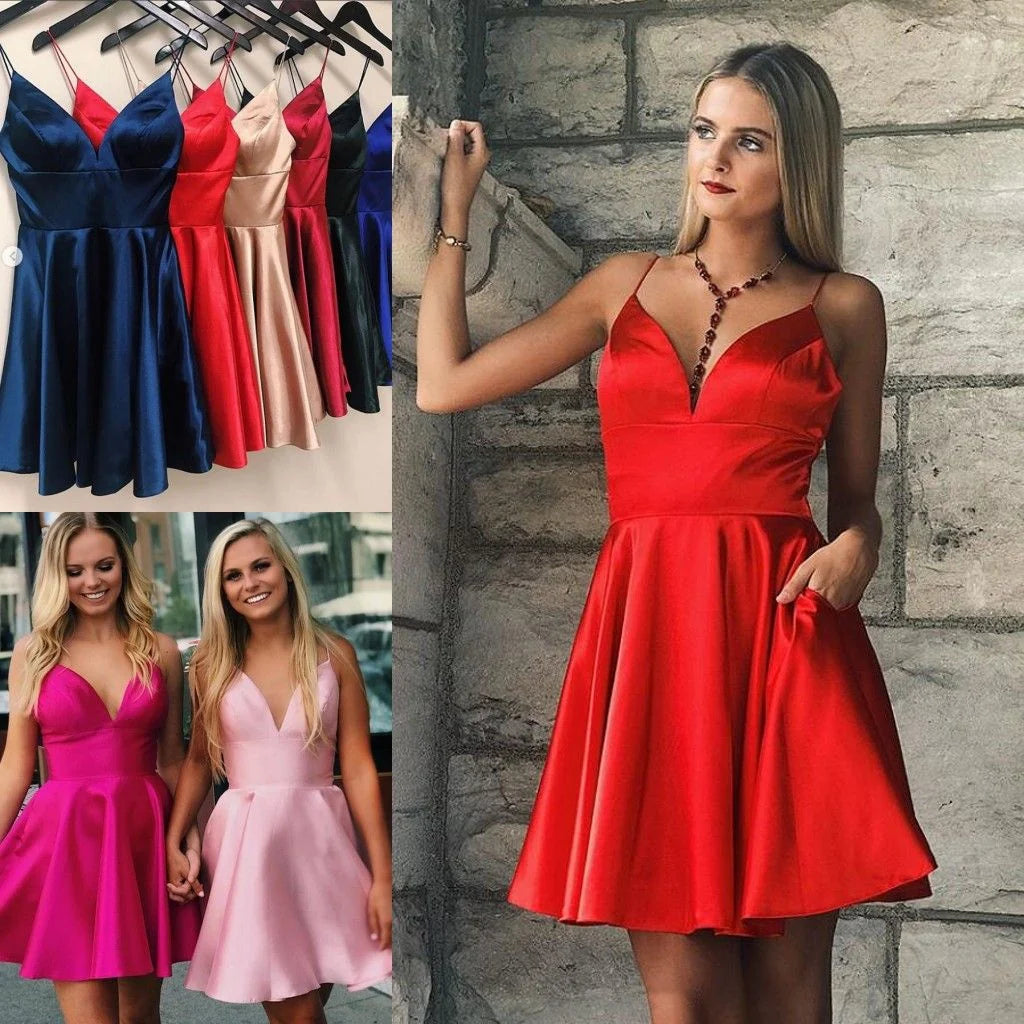 Spaghetti Straps A-Line Satin Homecoming Dress Mini Celebrity Dresses