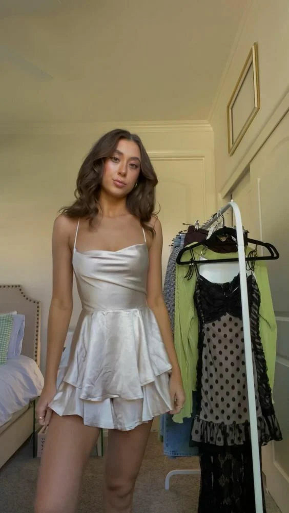 Spaghetti Straps Homecoming Dresses, Soft Mini Party Dress