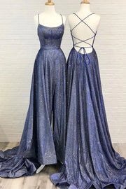 Sparkly A-line Spaghetti Straps Long Prom Dress With Slit simple gentle atmospheric and unique desi Bring summer colors to enhance whiteness