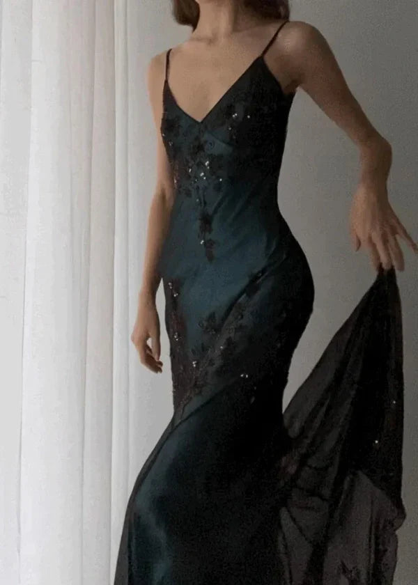 Sparkly Mermaid Sleeveless Spaghetti Straps Long Prom Dress Simple atmospheric beautiful and unique desig - US 2 / UK 6 / EU 32