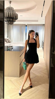 Square Neck Halter Dress Sleeveless A-Line Ruffled Hem Short Mini Dress Homecoming Dresses