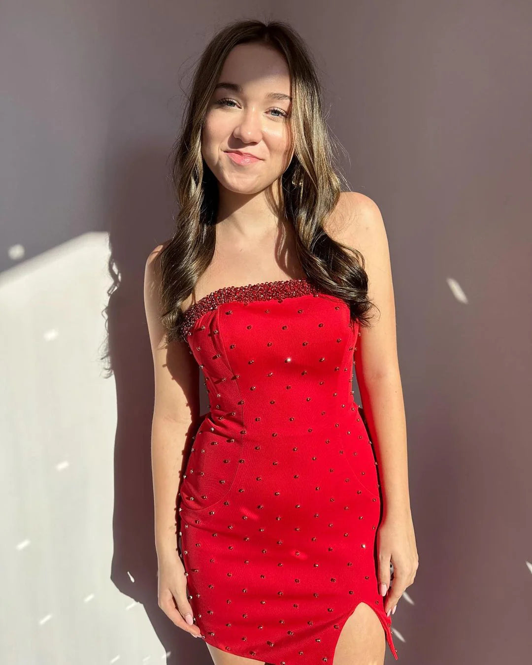 Strapless Red Beaded Homecoming Dresses With Bowknot Simple atmospheric beautiful and unique design