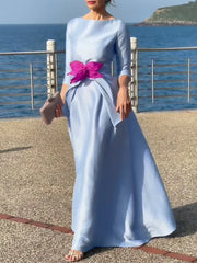 Three-Quarter Sleeves Solid Color Tied Waist Boat Neck Maxi Dresses Simple atmospheric beautiful and unique desi