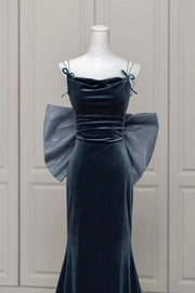 Velvet Blue Prom Dress Mermaid Backless Evening Party Dress with Bow simple gentle atmospheric and unique desi Brin