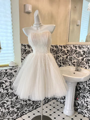 White Ball Gown Sweetheart Neck Beaded Tulle Short Homecoming Dress Birthday Dress simple gentle atmospheric and unique desi Bring summer colors to enhance whiteness - US 2 / UK 6 / EU 32