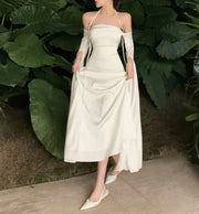 White Simple Clean A Line Halter Long Sleeve Satin Long Prom Dress Evening Dress simple gentle atmospheric and unique desi Bring summer colors to enhance whiteness