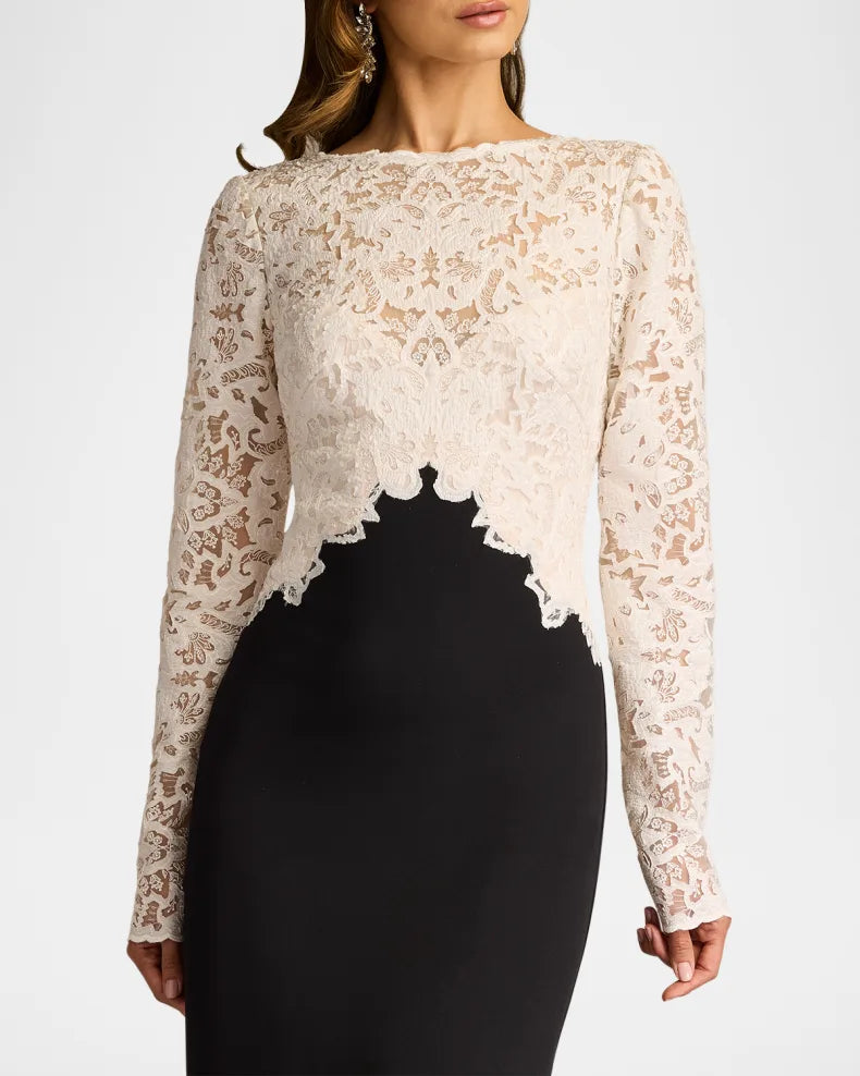 A-Line Crepe & Sequin Lace Gown Beautiful and charming simple and unique design