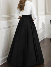 A-Line Mother of the Bride Dress Wedding Guest Elegant & Luxurious Plunging Neck Floor Length Satin Half Sleeve with Ruching