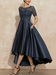 A-Line Scoop Neck Asymmetrical Satin Lace Mother of the Bride Dress With Pockets simple gentle atmospheric and unique desi Bring summer colors to enhance whiteness  - US 2 / UK 6 / EU 32