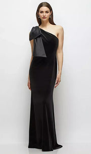 Make a dramatic statement in this Black One-Shoulder Velvet Maxi Dress. The one-shoulder design paired with a large bow adds a touch of glamour, while the plush velvet fabric and floor-length cut exude luxury. Perfect for formal events, galas, or any occasion to showcase sophisticated and eye-catching style.