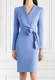 Blue Work Business Dress Long Sleeve Wedding Guest Midi Dress simple gentle atmospheric and unique desi Bring summer colors to enhance whiteness - US 2 / UK 6 / EU 32