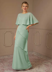 Elegant Sheath Boat Neck Cape Sleeve Draped Back Floor Length Mother of the Bride Dress