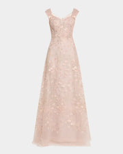 Floral-Embroidered Tulle Gown Beautiful and charming simple and unique design