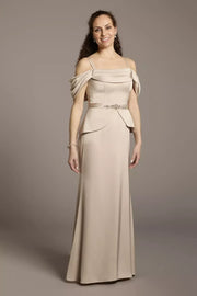 Graceful Mermaid Off Shoulder Flutter Sleeve Embellished Back Floor Length Mother of the Bride Dress