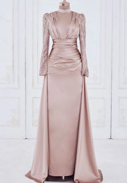High Neck Long Sleeves Beaded Formal Dress Pleated Sheath Mother of Bride Dress simple gentle atmospheric and unique desi Bring summer colors to enhance whiteness