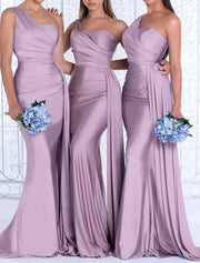Mermaid One-Shoulder Floor-length Long Bridesmaid Dresses simple gentle atmospheric and unique desi Bring summer colors to enhance whiteness