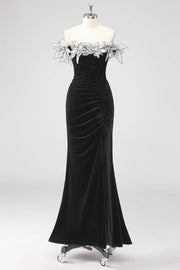 Mermaid Strapless Pleated Long Formal Dress With 3D Flowers