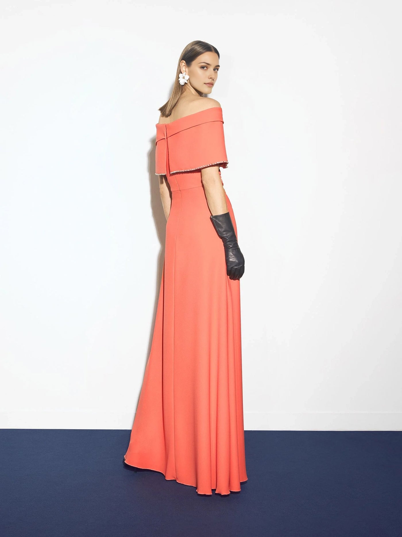 Off-Shoulder Maxi Dress with Embellished Trim A-line party dress with wrap neckline and short sleeves in crepe Mother of the Bride Dresses - US 2 / UK 6 / EU 32