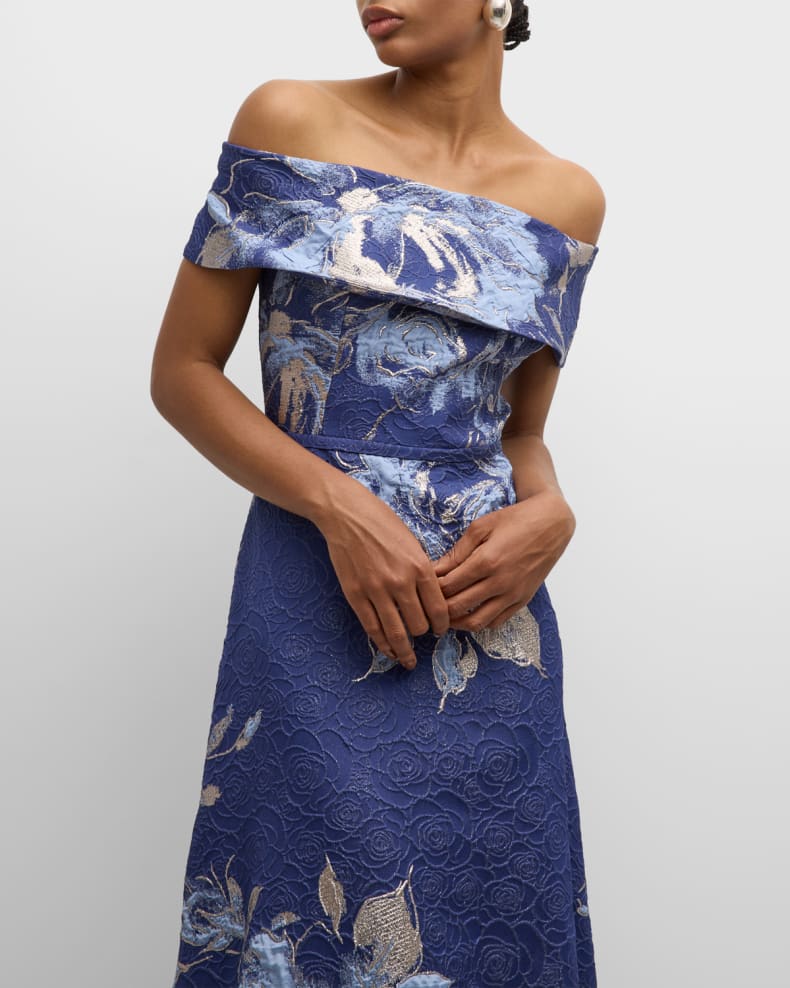 Off-Shoulder Metallic Flower Jacquard Gown Beautiful and charming simple and unique design - US 2 / UK 6 / EU 32