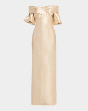 Off-Shoulder Metallic Jacquard Column Gown Beautiful and charming simple and unique design