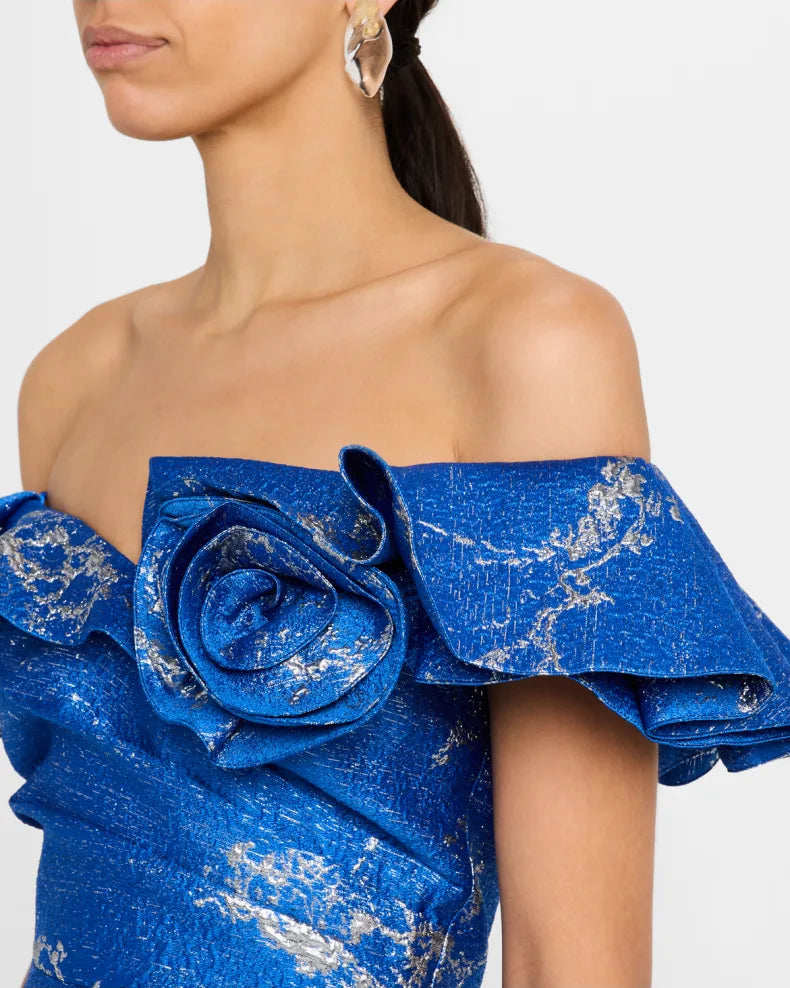 Off-Shoulder Metallic Jacquard Gown Beautiful and charming simple and unique design