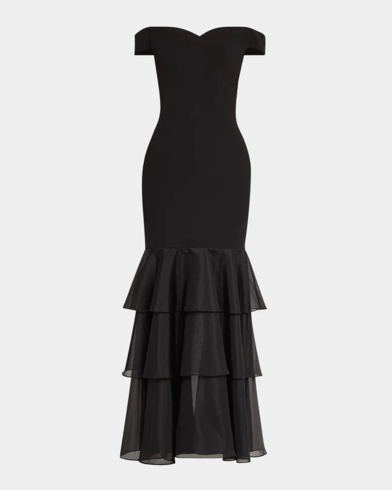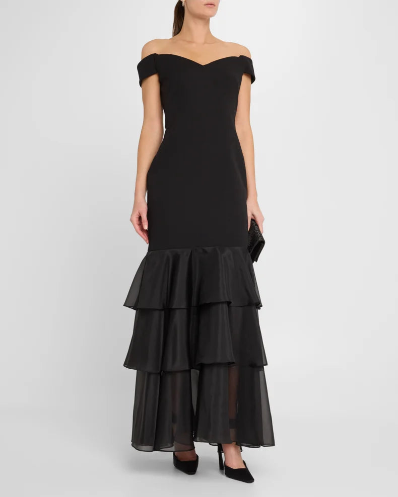 Off-Shoulder Ruffle Tiered Gown Beautiful and charming simple and unique design