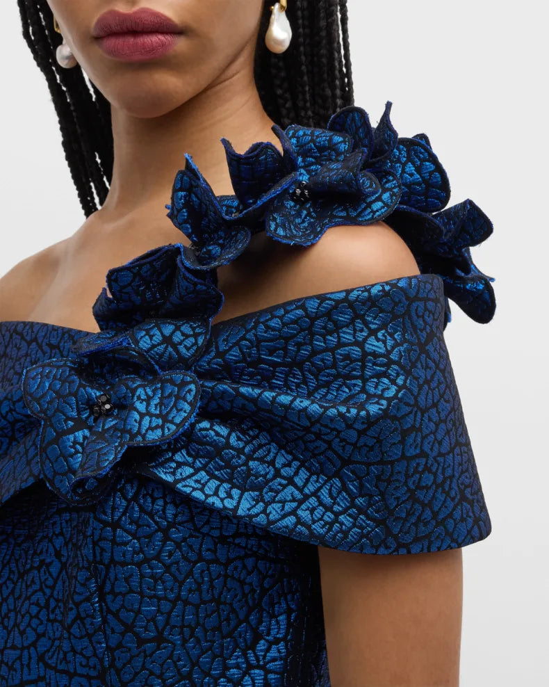 One-Shoulder Metallic Jacquard Column Gown Beautiful and charming simple and unique design