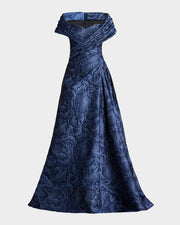 Pleated Off-Shoulder Floral Jacquard Gown Beautiful and charming simple and unique design