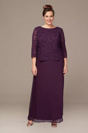 Plus Size Polished Two Piece Boat Neck Three Quarter Sleeve Lace Back Mother of the Bride Dress Evening Dress Prom, black tie events, formal weddings, and upscale parties