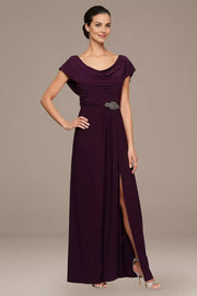 Polished A Line Cowl Neck Cap Sleeve Ruched Back Mother of the Bride Dress Evening Dress Prom, black tie events, formal weddings, and upscale parties