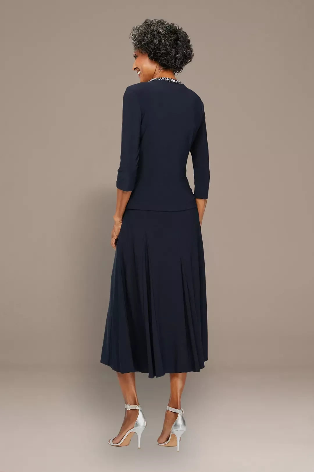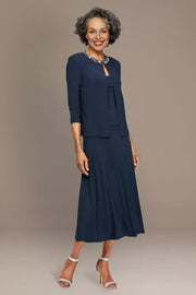 Polished Three Piece Scoop Neck Three Quarter Sleeve Plain Back Midi Length Mother of the Bride Dress - US 2 / UK 6 / EU 32