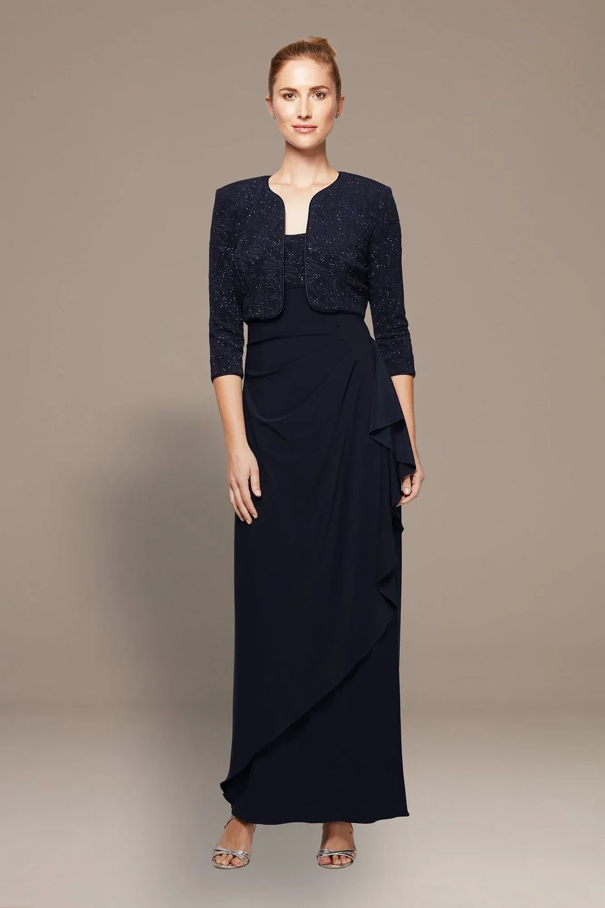 Polished Two Piece Scoop Neck Three Quarter Sleeve Plain Back Floor Length Mother of the Bride Dress - US 2 / UK 6 / EU 32