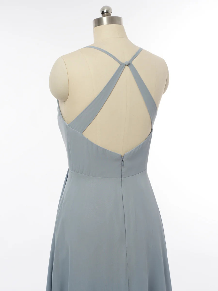 Princess Halter Sleeveless Bridesmaid Dresses with Split Side simple gentle atmospheric and unique desi Bring summer colors to enhance whiteness - US 2 / UK 6 / EU 32