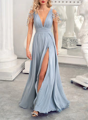 Princess V-Neck Floor-length Long Bridesmaid Dresses simple gentle atmospheric and unique desi Bring summer colors to enhance whiteness - US 2 / UK 6 / EU 32