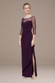 Regal Sheath Illusion Neck Three Quarter Sleeve Zipper Back Floor Length Mother of the Bride Dress - US 2 / UK 6 / EU 32