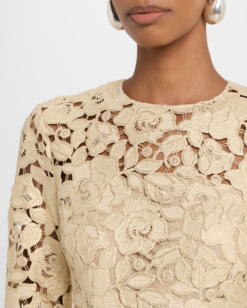 Ruffles JacCrystal Rose Guipure Long-Sleeve Gown Beautiful and charming simple and unique design