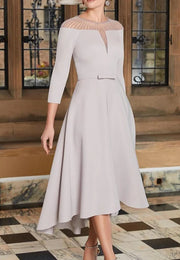 Scoop Long Sleeves Sleek A-Line Mother of Bride Dress simple gentle atmospheric and unique desi Bring summer colors to enhance whiteness