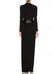 Sheath / Column Evening Gown Party Dress Evening Party Black Tie Gala Floor Length Long Sleeve V Neck Belt / Sash Cotton Blend Backless with Pleats Ruched Slit - US 2 / UK 6 / EU 32