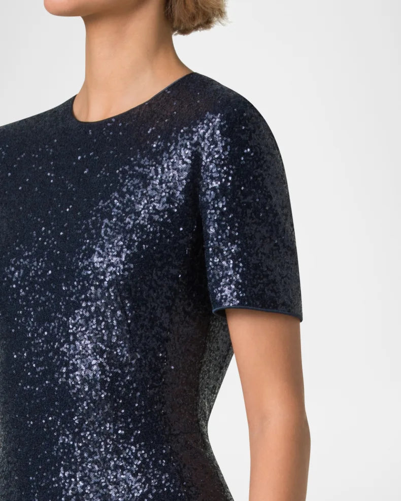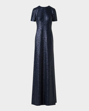 Short-Sleeve Stretch Paillette Jersey Gown Beautiful and charming simple and unique design