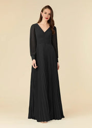 Stylish A Line V Neck Bishop Sleeve Ruched Back Floor Length Mother of the Bride Dress - US 2 / UK 6 / EU 32