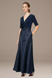 Stylish A Line V Neck Three Quarter Sleeve Plain Back Floor Length Mother of the Bride Dress